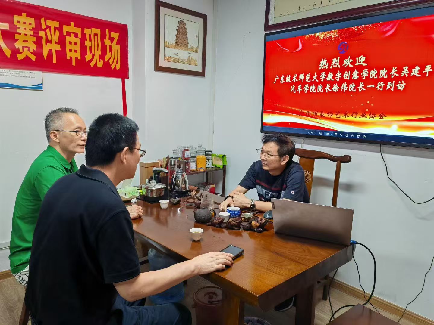 2025年9月17日,广东技术师范大学创意数字学院吴健平院长、汽车学院徐伟院长一行前往广州市装饰艺术行业协会开展调研交流,受到广州市装饰艺术行业协会秘书长李毅热情接待。